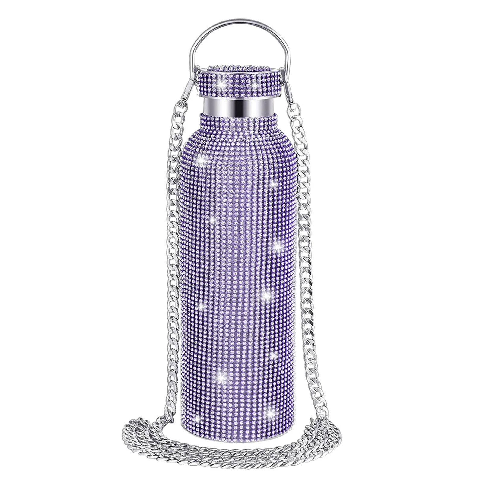 Finely crafted stainless steel insulated water bottle adorned with sparkling rhinestones for a touch of elegance while staying hydrated.