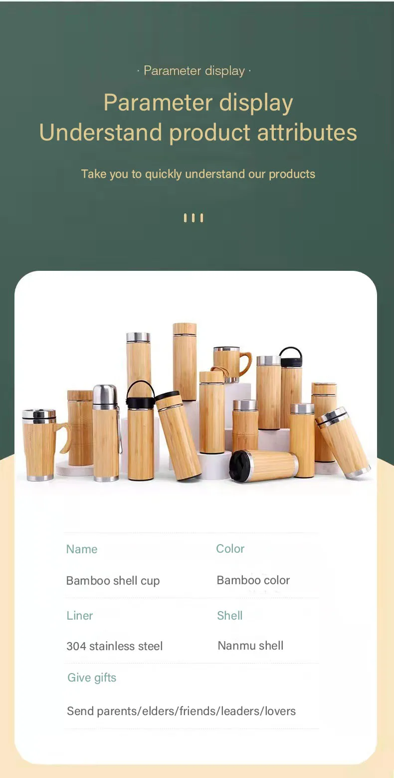 Eco-Friendly bamboo and stainless steel cup with Straw - 450 or 500ml